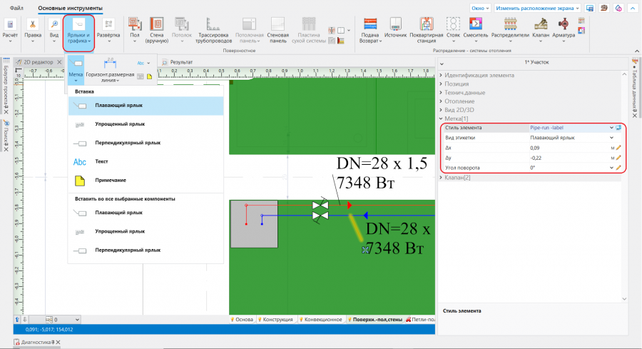 - Используйте Копировать-Вставить для вставки клапанов того же типа на другие участки трубопровода.