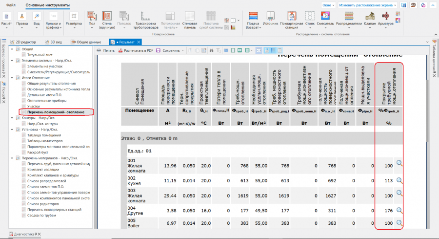 Результаты расчетов | Full printout, xls Full printout, pdf Radiant heating calculation results, pdf Bill of materials, pdf Installation parameters, pdf |